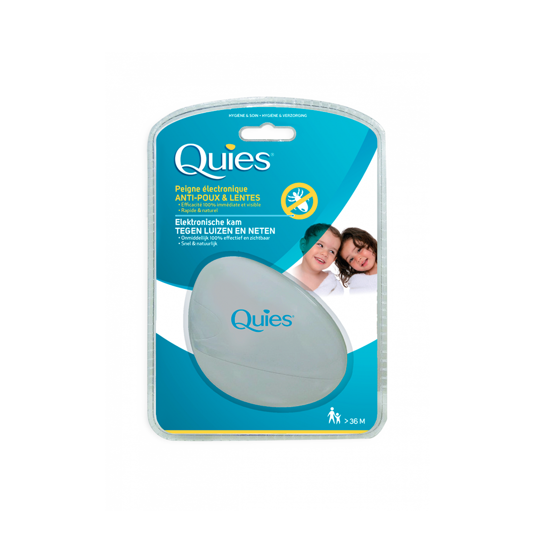Quies biedt een natuurlijk alternatief voor chemische behandelingen en afweermiddelen tegen luizen die de hoofdhuid aantasten. De elektronische kam van Quies is handig in gebruik, pijnloos en onschadelijk voor mensen. Hij kan worden gebruikt vanaf de leeftijd van 3 jaar.